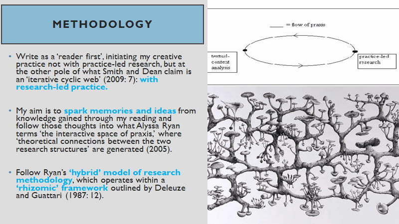 What does all of this ‘thinking about thinking’ have to do with my research project? A hell of a lot apparently – but it’s only been through the completion of my Early Candidature Milestone report and presentation in recent months that I’ve fully come to realise the central place of reflection in my research and writing process.